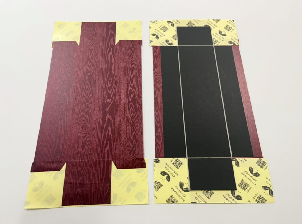赤色に木目調のパッケージになっており、高級感と自然な木目のデザインになっています。シンプルなデザインながらこういったデザインのオリジナル貼り箱は箔押しや印刷がなくても目を引くデザインとなっています。神奈川 貼箱を探すなら弊社サンライト紙工株式会社にご連絡ください。様々なデザインと仕様をご提案できるかと思います。